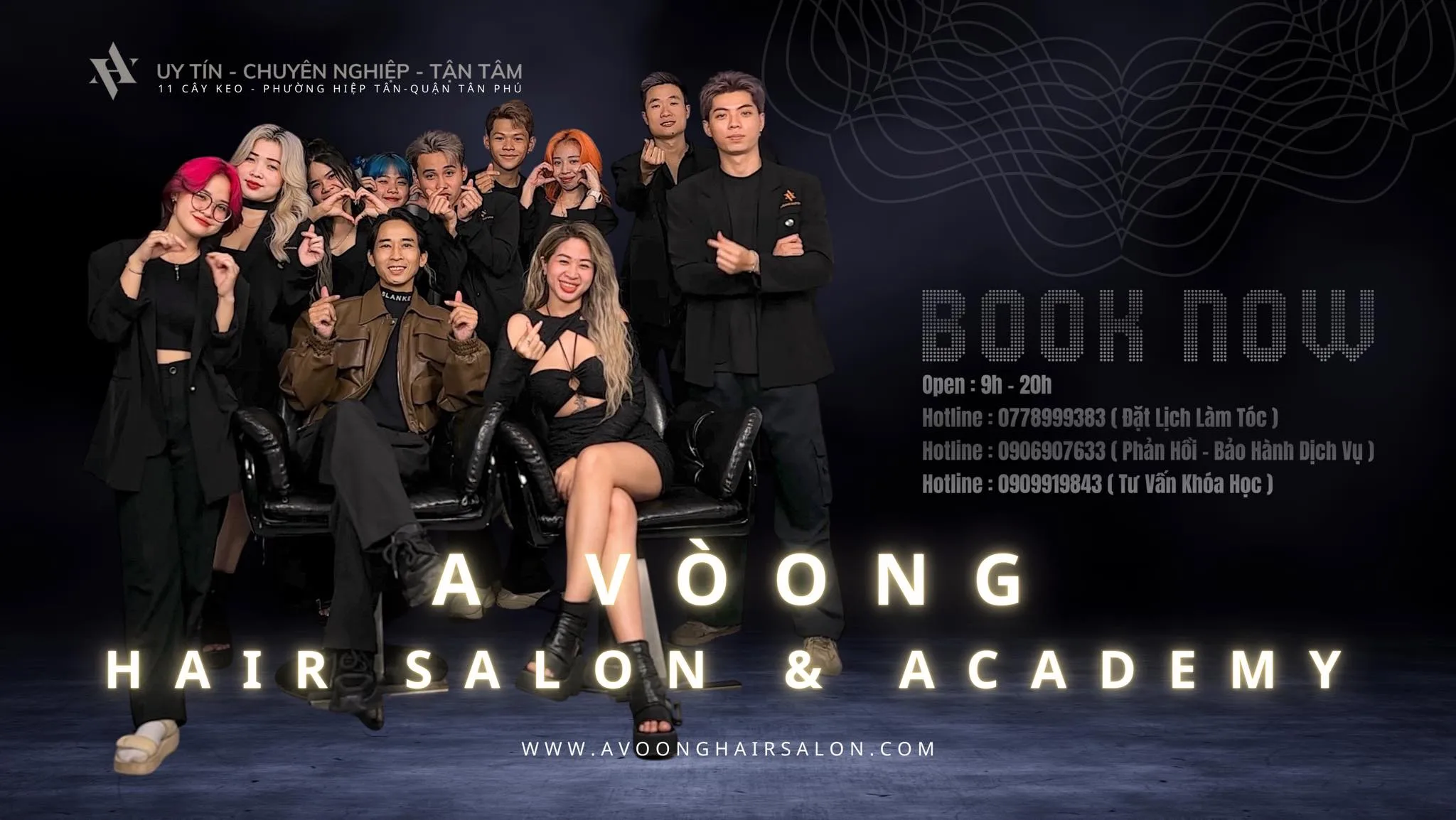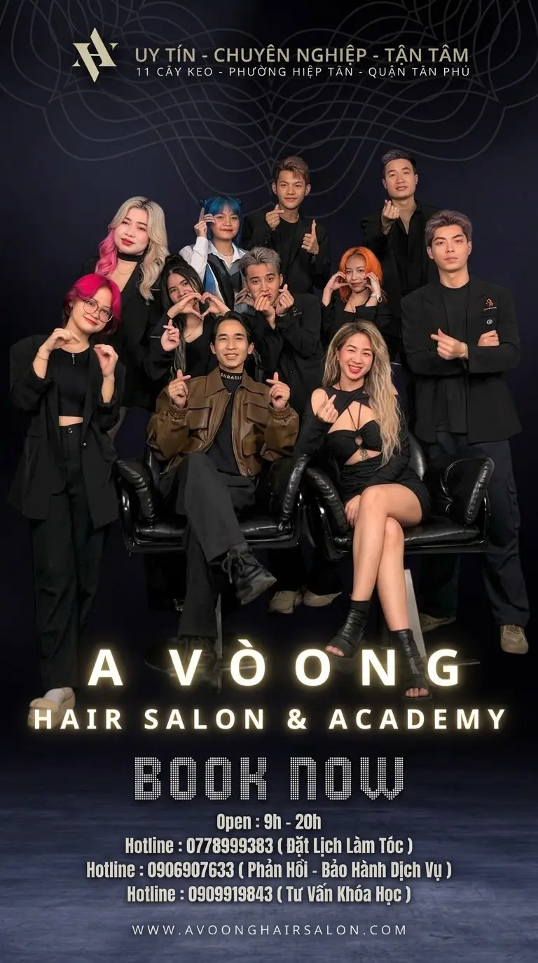 A Voòng Hair Salon là địa chỉ uy tín dành cho những ai muốn học nghề tóc chuyên nghiệp tại TP.HCM. Với nhiều năm kinh nghiệm trong ngành, A Voòng cung cấp các khóa học làm tóc chất lượng cao, giúp học viên phát triển từ căn bản đến nâng cao. Tại đây, bạn sẽ được học nghề làm tóc với đội ngũ giảng viên giàu kinh nghiệm, cập nhật các xu hướng tóc mới nhất.